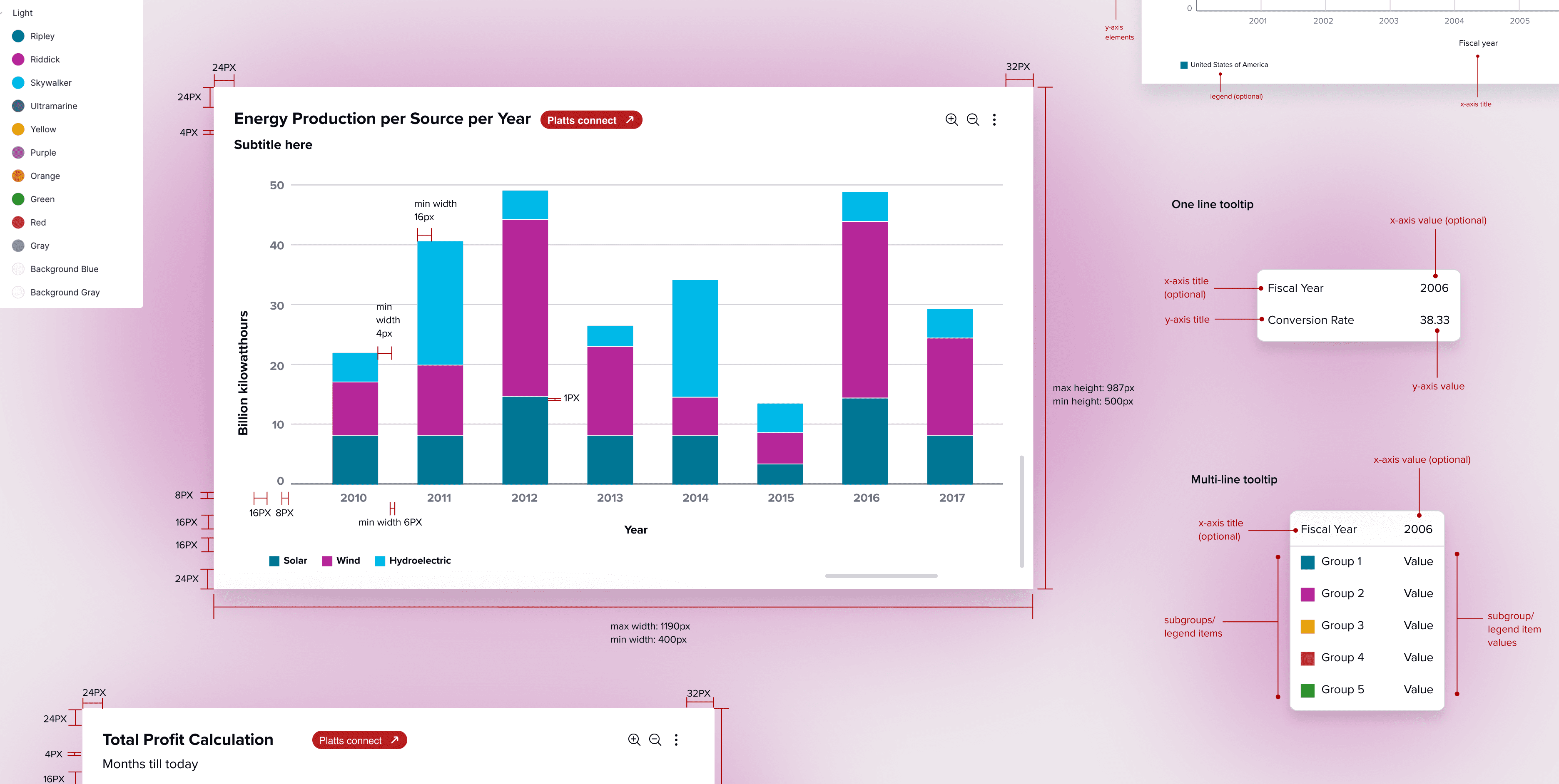 A robust design system that guides front-end engineers on making quick design decisions for data visualizations.
